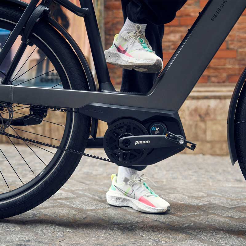 Souverän und leistungsstark – das Nevo5 meistert jede Herausforderung mit Sicherheit und Gelassenheit. Ob bergab, bei hoher Geschwindigkeit, mit großem Gepäck oder durch enge Kurven: Es hält stets die Spur und bringt Sie sicher ans Ziel. Dank der federnden Gabel, der dynamischen Sattelstütze und des besonders steifen, hochwertigen Rahmens wird jedes Uneben abgefedert und die Kraft optimal übertragen. Zuverlässig unterstützt wird die Fahrt vom kraftvollen Bosch Performance Line CX Motor mit bis zu 100 Nm Drehmoment oder der wartungsarmen, kompakten Pinion MGU-Getriebevariante. Beide Antriebe sorgen für eine reibungslose, effiziente Leistung und maximale Fahrspaß.